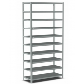 Полки стеллажей имеют стандартные размеры и могут крепиться к вертикальным стойкам с регулировкой по высоте. Разная высота стоек позволяет в сочетании с использование широкого выбора полок собирать стеллажи необходимых размеров и конфигураций. Конструкция позволяет быстро изменять высоту полок.