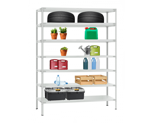 Размеры внешние. мм (ВхШхГ): 1800x 1000x 300 Количество полок: 8 полок (ярусов) Конструкция: Сборно-разборная Цвет: Светло-серый (RAL 7035) Тип покрытия: Порошково-полимерная краска