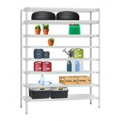 Полки стеллажей имеют стандартные размеры и могут крепиться к вертикальным стойкам с регулировкой по высоте. Разная высота стоек позволяет в сочетании с использование широкого выбора полок собирать стеллажи необходимых размеров и конфигураций. Конструкция позволяет быстро изменять высоту полок