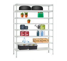 Полки стеллажей имеют стандартные размеры и могут крепиться к вертикальным стойкам с регулировкой по высоте. Разная высота стоек позволяет в сочетании с использование широкого выбора полок собирать стеллажи необходимых размеров и конфигураций. Конструкция позволяет быстро изменять высоту полок